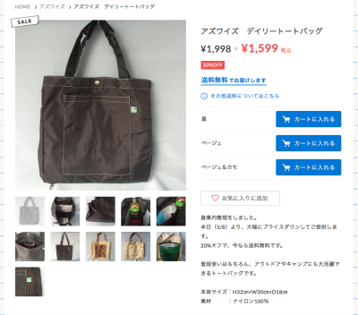 引き続きオンラインストア、在庫整理販売スタート!第1弾、デイリートートバッグ