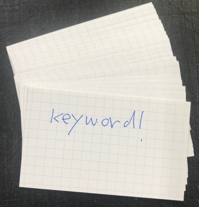 アイデアを集めるには、名刺サイズのカードにキーワードを書く